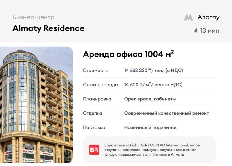 Аренда офиса в бизнес-центре Almaty Residence. Этаж целиком. Светлый офис с панорамным остеклением. Есть отдельные кабинеты и переговорные. - Площадь: 1004. 4 м² - Отделка: современный..