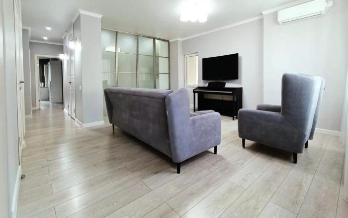 Встроенная кухня, тихий двор, кондиционер. Уютная квартира с отличной планировкой! Объективный торг возможен. Квартира очень светлая и просторная, в хорошем состоянии. Окна сквозные, смотрят на юг, север и запад, отличная проветриваемость. Каждый сантиметр квартиры использован практично, вмещая в себя две изолированные спальни, гардеробную, гостиную с кухней-студией, где чувствуются простор и комфорт. Квартира продается с большим бонусом - со всей мебелью и техникой, что есть на фото! Заезжай и живи, наслаждаясь удобствами! Данная квартира отличный вариант как для проживания, так и для сдачи в аренду. Описание квартиры: 1) гостиная отрытой планировки, с выходом на балкон – 17 кв. 2) главная спальня, с выходом на балкон – 17 кв. 3) вторая спальня (детская) - 15 кв. 4) зона кухни-студии открытой планировки – 10 кв. 5) гардеробная – 4 кв. 6) просторный коридор – 11. 5 кв. 7) раздельный санузел – 4, 5 кв. и 2. 9 кв. 8) два балкона – 4 кв. и 3 кв. Общая площадь 88. 3 кв. указана с полной площадью балконов. О ЖК: ЖК представляет собой мини-городок, где имеются все удобства для каждого жителя комплекса, в том числе игровые площадки для детей, беседки для отдыха, продуктовые магазины, аптеки, детские развивашки, мед центр, авто сервисы, кафе, салоны красоты. А в шаговой доступности имеются дополнительные блага и удобства для комфортной жизни: поликлиника, кино-театр, образовательные, финансовые учреждения и многое другое. Очень чистая и аккуратная территория. Также территория ЖК охраняется, контролируемый въезд и выезд, кроме подземного паркинга очень много наземных парковочных мест. Звоните. Показ в заранее согласованное время. P/S: агентские услуги оплачиваются дополнительно - 1%. С уважением, компания Benvido.