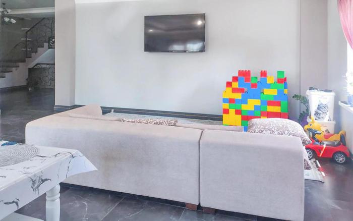 CRM-12065 Продается просторный дом в 3-х уровнях 2018 года постройки с ровным участком 8 соток в престижном и удобном для проживания районе города. Первый уровень: Холл, Спальня, Кухня Студия, Сан узел. Второй уровень: Холл, Три спальни, Гардероб. Цоколь: Кинотеатр, 2 кладовых комнаты. Подключены все коммуникации, обеспечивающие комфорт и безопасность. Благоустроенная территория с газоном и зелеными насаждениями, есть парковка для 3-х автомобилей