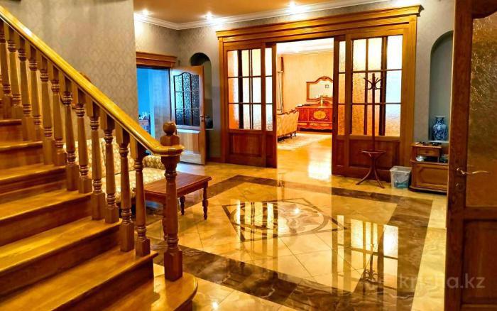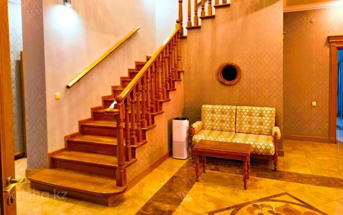 CRM-40316 ✅В продаже уникальный дом. ✅Дом находится на первой линии Аль-Фараби. (Может подойти под офис) ✅Дом в 575 кв, м в 3 уровня. ✅Первый этаж: Холл, кухня, гостиная с камином, кабинет с сан узлом, гардероб и гостевой сан узел. ✅Второй этаж: Холл с выходом на балкон и зимний сад, 4 спальни 3 с сан узлами и гардеробами и 1 с сан узлом. ✅Дом выполнен из качественных материалов межкомнатные двери, лестница, штучный паркет выполнены из масива дуба. ✅Цоколь: 2 больших гардеробных, прачечная, котельная, комната отдыха с бильярдным столом, финская сауна, хамам, бассейн. ✅Прекрасный ухоженный участок - многолетние хвойные деревья. Городские коммуникации включая канализацию. ✅Участок в 10 соток правильной прямоугольной формы с навесом на 6 авто и системой авто полива. ✅Дом оборудован: система видео наблюдения и