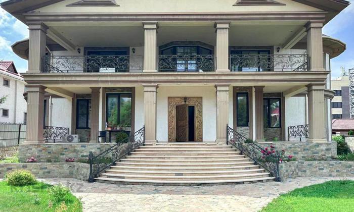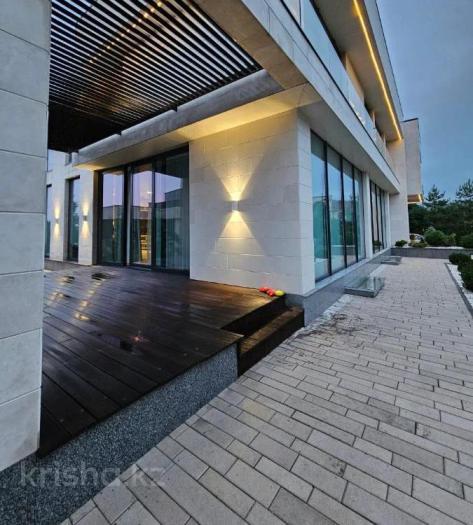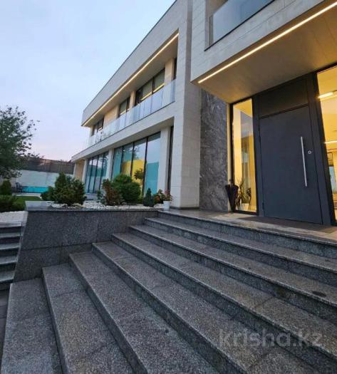 Дом, где стекла больше чем стен! - Огромное пространство отдано в жилые комнаты - Две открытые террасы это очень удобно летом (выход с гостиной и столовой) - Потолки более трех метров. - Две гостиные комнаты (одна с мягкой мебелью для отдыха; вторая больше для приема гостей) - Пять спальных комнат расположились на втором этаже. - Нулевой уровень занимают игровая комната для детей, кинозал, комнаты бытового назначения, гараж на три машины. - Система умный дом. В строительстве и отделке только натуральные материалы. - Большое внимание уделили освещению двора и подсветки фасада дома. - открытый бассейн с водопадом, - Территория для отдыха, барбекю пространство - участок 15 соток. Дорога до пр. Аль-Фараби занимает всего 3 минуты.