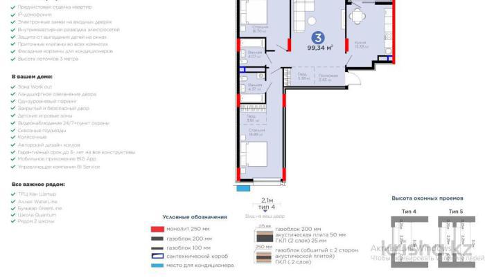 жил. комплекс Hanshaiym, кирпичный дом, 2021 г. п., потолки 3. 2м