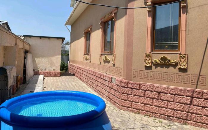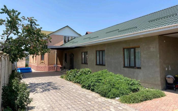 Дом 2 этажа, район Химпаселка, ул. Жалаири, 2013 года постройки плюс большая пристройка 2024 года, общая площадь 222 кв. м. Материал постройки - жженный кирпич, крыша..