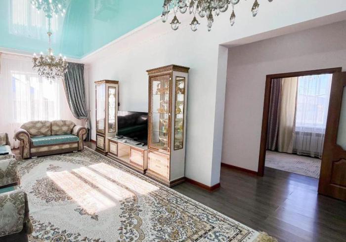 Пластиковые окна, баня, гараж, сад. Продам дом, построенный в 2018 году. Дом находится в городе Талдыкорган, район Северо-Западный, на улице К. Молыкбай 24А. С хорошим евро. ремонтом, газовое отопление, удобства все в доме. В доме 4 комнаты: холл и 4 жилые комнаты. Также есть кухня, прихожая, топочная, коридор, кладовая и санузел. Имеется гараж, летняя кухня, баня, огород и кладовая. Рядом с домом находятся школа, детский сад, супермаркет и остановка (ходят автобусы 31 и 31А). Кроме того, в доме остаются полностью мебель, включая ковры, шторы, люстры и т. д. Даулен.