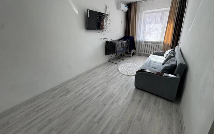 2 бөлмелі пәтер, 2-қабатта орналасқан. Орналасқан жері өте ыңғайлы — дәл ЗАГС-тың үстінде. Пәтер толықтай жиһазымен бірге сатылады, кіріп отыруға дайын. Бағасы: 12 000 000 теңге, жақсы саудасы бар. Тек қолма-қол ақшаға. Гулжаухар.
