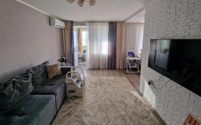 Пластиковые окна, неугловая, улучшенная, комнаты изолированы, кухня-студия, встроенная кухня, новая сантехника, счётчики, тихий двор, кондиционер. В продаже квартира очень тёплая, с качественным ремонтом. Просторные комнаты светлые и уютные. Отличная планировка, современная кухня, просторная прихожая. Дом находится в тихом районе, кирпичный дом, рядом вся инфраструктура, отличный вариант для семьи. Звоните
