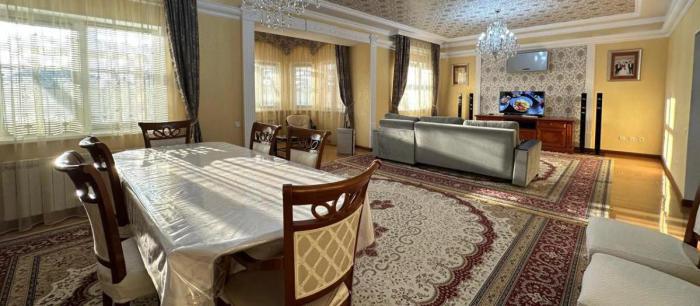 Продается шикарный 6 комнатный 2х этажный в Лесхозе. Этажность - 2 этажный. Соток - 14 Комнат - 6 Площадь - 240 кв. м. Год постройки - 2013г. Дом очень теплый, светлый, просторный в мкр Лесхоз-2, вдоль дороги асфальтированной рядом остановки, большой двор, во дворе - еще 2 дома с санузлами, - баня с душем на два поста, - гараж, - сад с плодовыми деревьями, цветы, - беседка топчан с навесом из полигаля, - двор на лето затеняется специальной сеткой от солнца, - два вьезда -с 2 воротами и входом. - Электричество 3 фазное, - котельная с емкостями для сбора воды и дорогими насосами и новыми дорогими котлами Buran boiler, - участок оснащен дренажом. - по всему периметру участка сделан грамотный дренаж двор сухой всегда. - Весной подключат к центральной канализации. - Дом расположен на перекрестке двух дорог удобно для коммерции. - Двор обложен дорогой плиткой, - ворота на пульте Доорхан, - видео Домофон. Можно обмен на 1-2-3 х комнатную квартиру в новых жк с вашей доплатой.