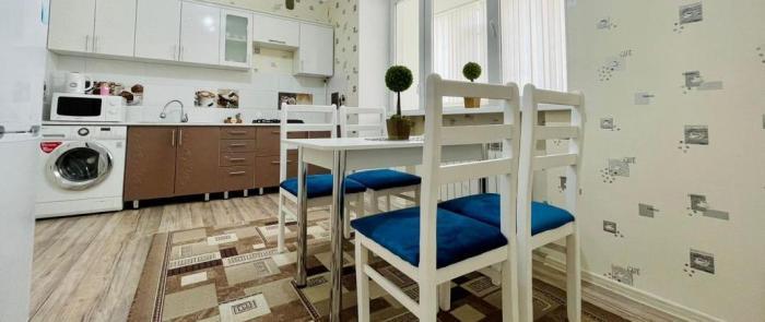 Просторная квартира на 1-ом этаже с большой кухней с раскладным диваном. Находится сзади Облгаи, рядом с Метро, гипермаркетом Дина, теннисным центром, ледовым дворцом, Жекпежек, кафе Анталия и Балейма. Охраняемая территория с видеонаблюдением. расположена в удобном и тихом месте со своей парковкой. К Вашим услугам апартаменты с гостиничным сервисом - отглаженные пастельные принадлежности, чистые махровые полотенца, одноразовые банные комплекты. В квартире есть все необходимое для Вашего комфортного проживания - бытовая техника, мебель, высокоскоростной интернет Wi-Fi, кабельное телевидение, кондиционер, шампунь, гель для душа, фен, вода, чай и кофе. Компания «TRILLIONER» предоставит для Вас лучший сервис в нашем городе! Предоставляем все необходимые документы для Вас и Вашей компании.