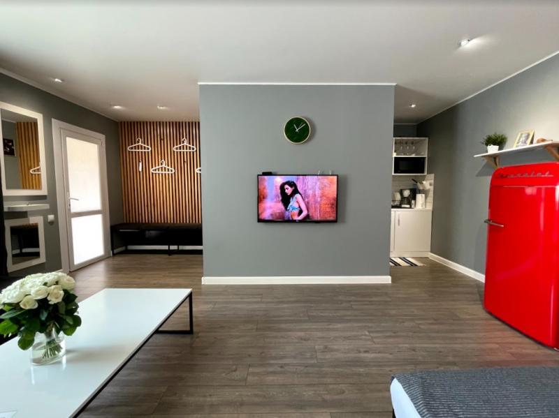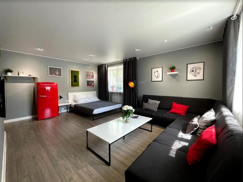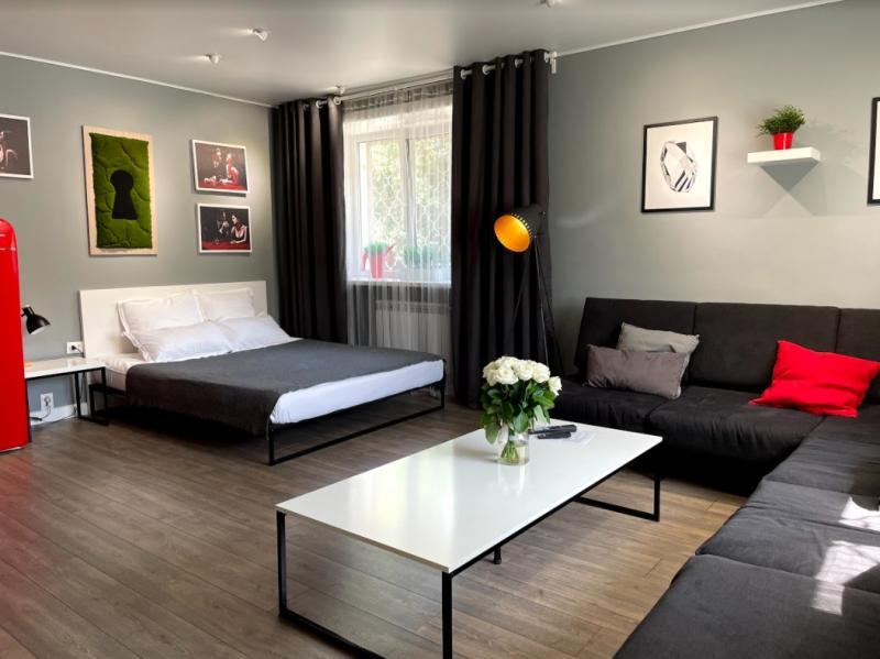 1 комнатная квартира-студия бизнес-класса с двуспальной кроватью и дополнительным спальным местом - диваном на 1 человека. квартира без посторонних запахов, не прокурена и идеально убрана, фото..