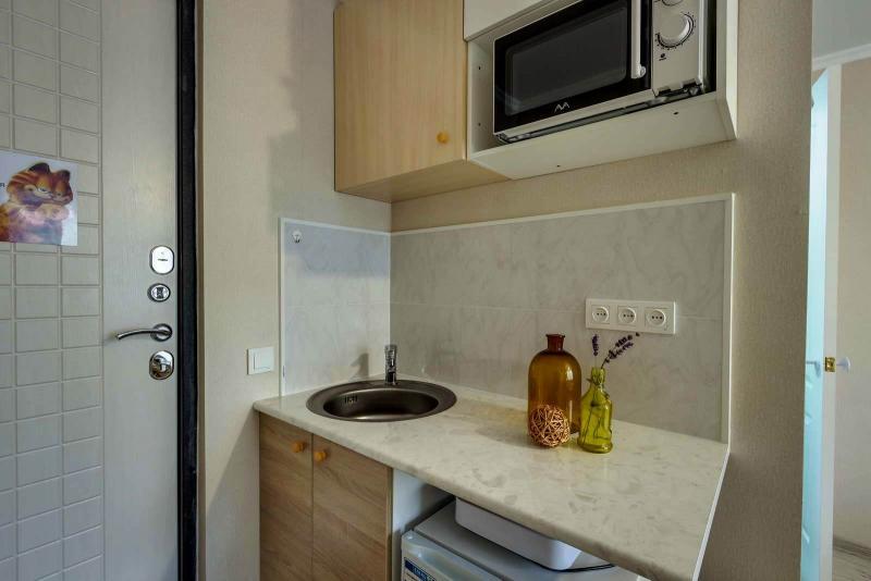 Студия – комната с мини-кухней и собственным санузлом. Бюджетный вариант с гостиничным сервисом за двухместную стильную, уютную, продуманную до мелочей студию! Прекрасно подойдет для командировочных, гостей..