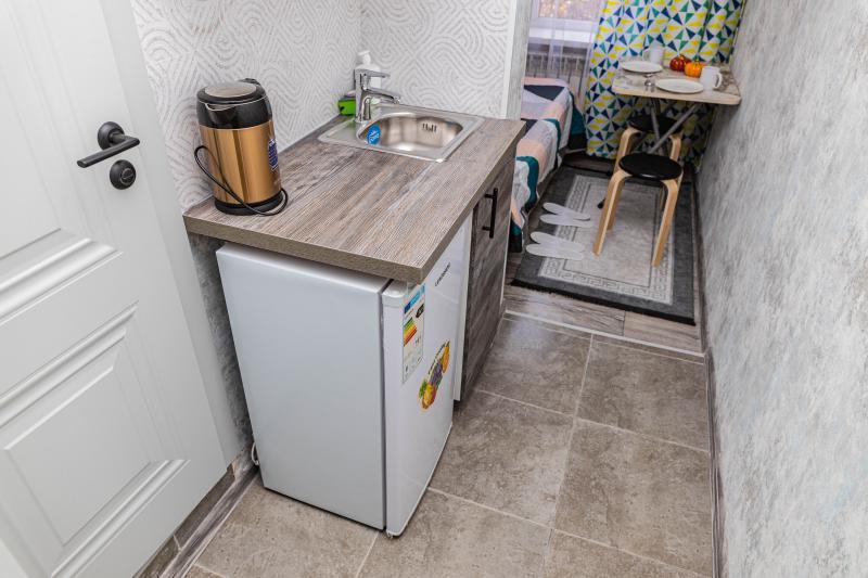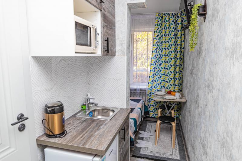 Студия – комната с мини-кухней и собственным санузлом. Бюджетный вариант с гостиничным сервисом за двухместную стильную, уютную, продуманную до мелочей студию! Прекрасно подойдет для командировочных, гостей..