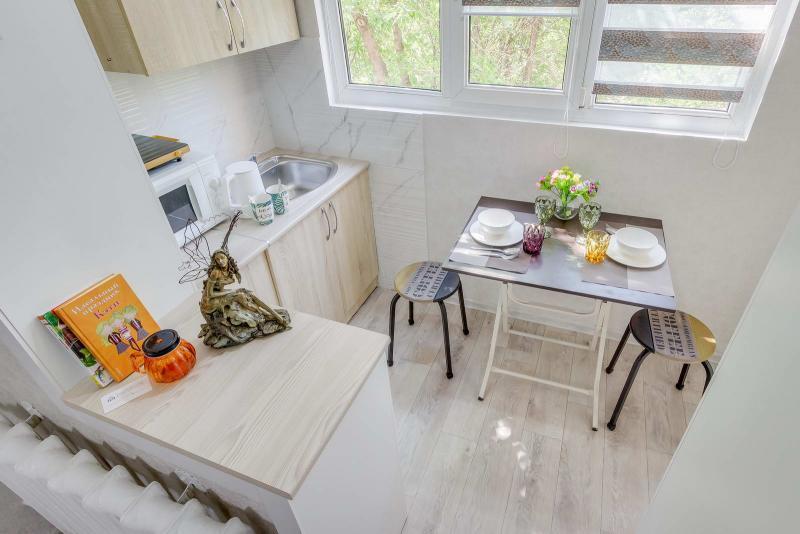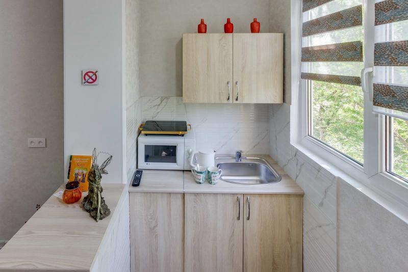 Студия – комната с мини-кухней (укомплектованной бытовой техникой, посудой) и собственным санузлом с ванной. Отличный вариант с гостиничным сервисом по приемлемой цене за двухместную стильную, уютную,..